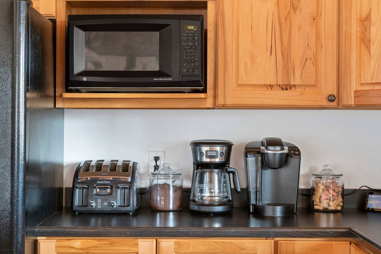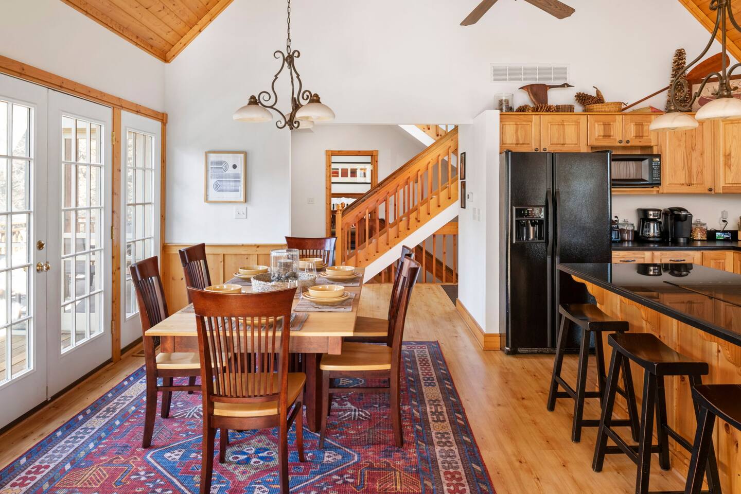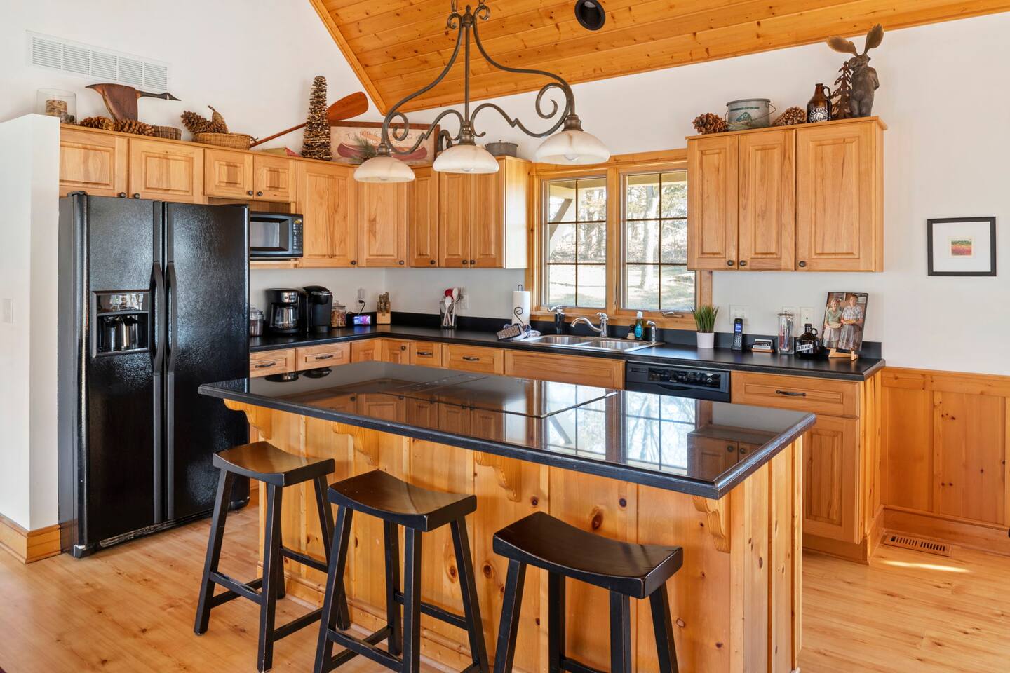 - Fully equipped kitchen with dishwasher, stove/oven, cookware, Keurig & drip coffee maker with K-cups, cooking utensils, pots & pans, toaster, microwave, dishware, flatware.