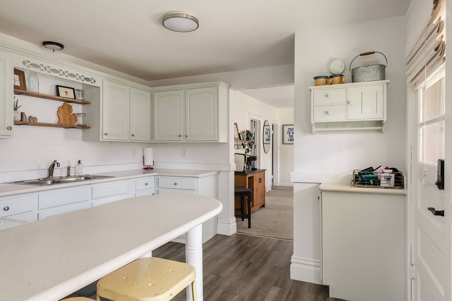 This is an older Michigan cottage and while absolutely charming, the stairs to the second floor are steep and the bathroom is located on the main level. Please keep this in mind for older guests or those with very young children.